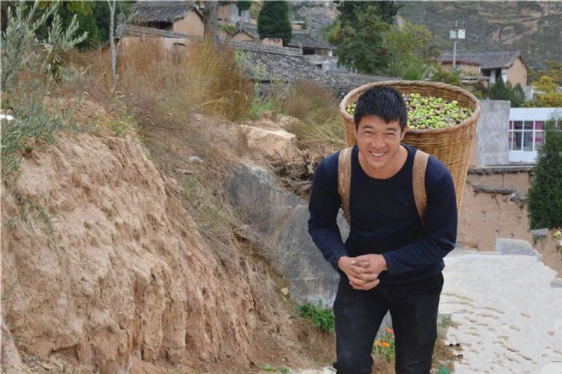 在崖角村,老百姓們把采摘好的果子背到收購現(xiàn)場按序交售,村民趙志曹說:“今年祥宇公司進村收購,