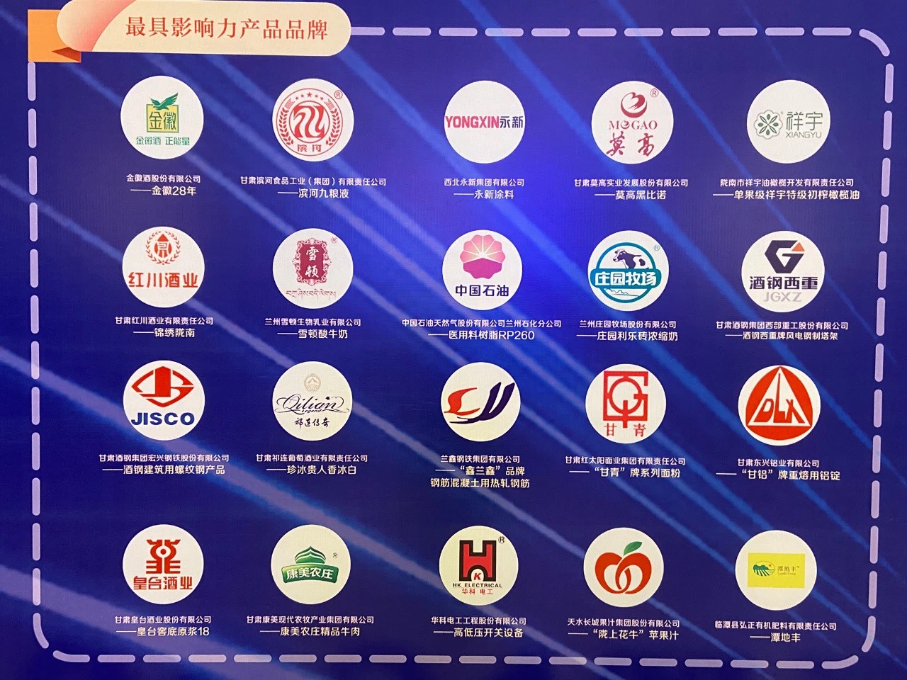 甘肅日報社、甘肅省質(zhì)量協(xié)會主辦,推選活動中脫穎而出的有20個最具影響力企業(yè)品牌、10位品牌人物、