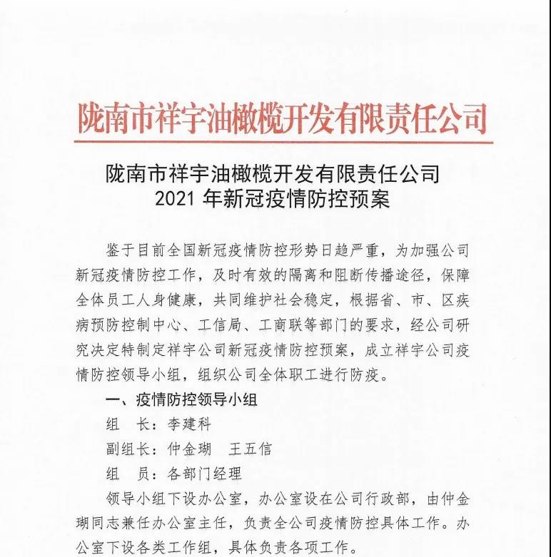 確保今年油橄欖鮮果收購(gòu)工作圓滿完成,隴南市祥宇油橄欖開發(fā)有限責(zé)任公司根據(jù)實(shí)際情況及時(shí)成立了疫情防控小組,
