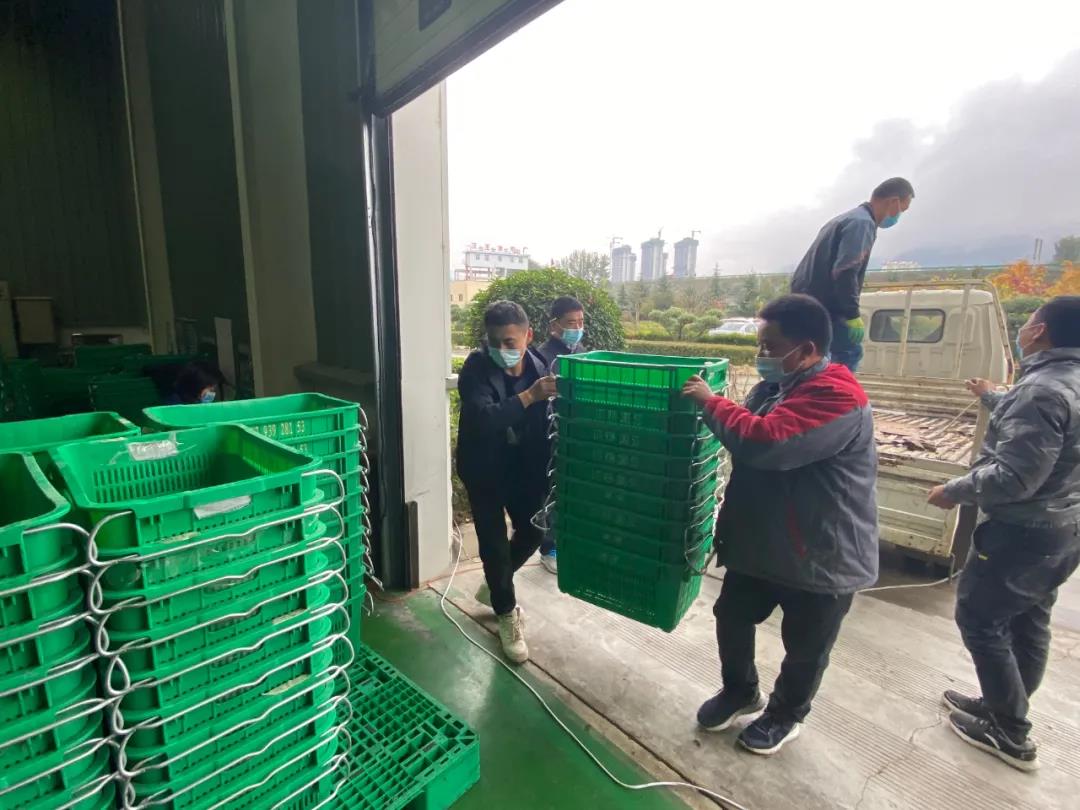 鮮果收購(gòu)現(xiàn)場(chǎng),所有工作人員都佩戴好口罩,過磅、驗(yàn)果、卸車、入庫(kù)等工作在有序進(jìn)行。
