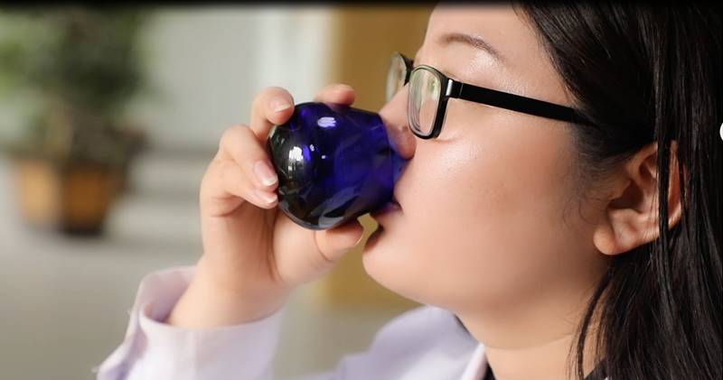 聞:把品油杯拿在下巴的位置可以聞一下它的味道,