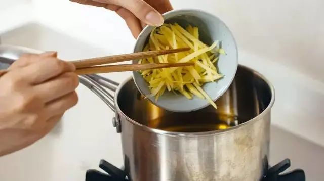 冷鍋入橄欖油,小火起鍋,并用竹筷測(cè)試油溫,