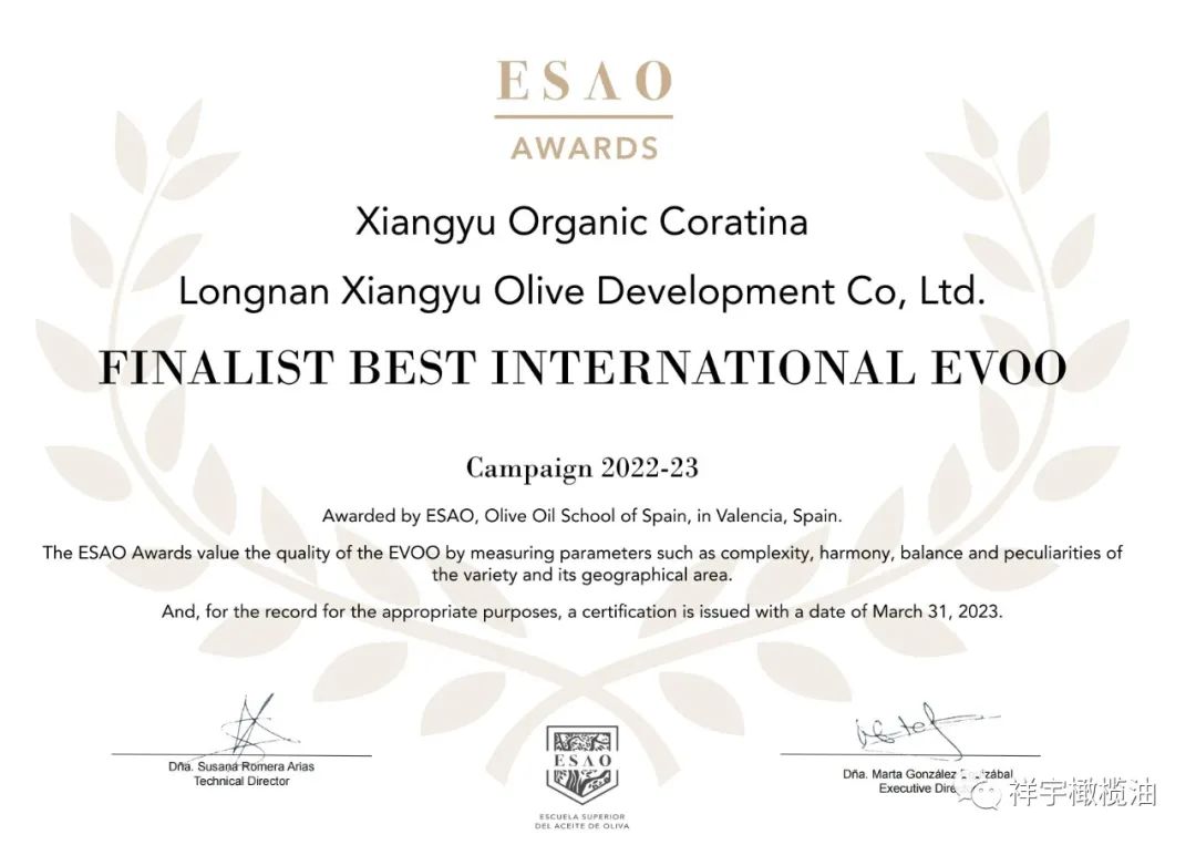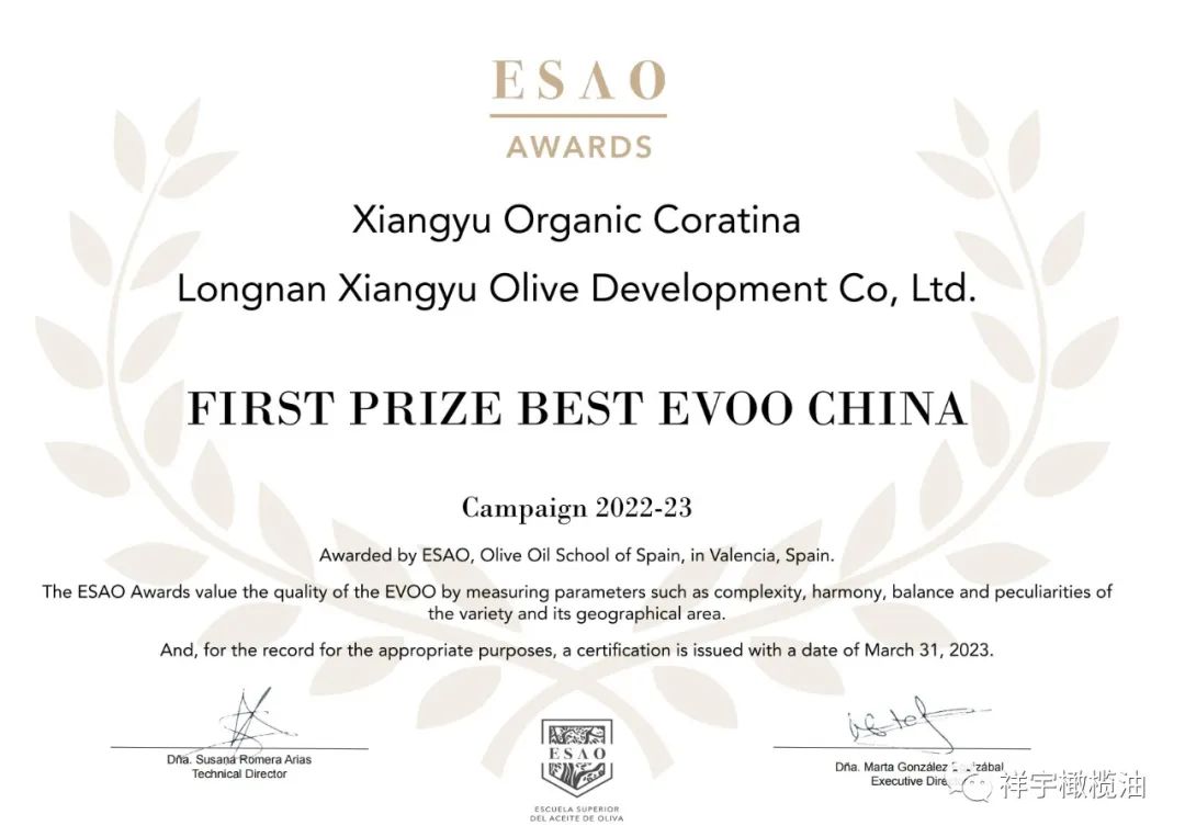“ESAO Awards”中榮獲中國最佳特級初榨橄欖油一等獎(jiǎng),